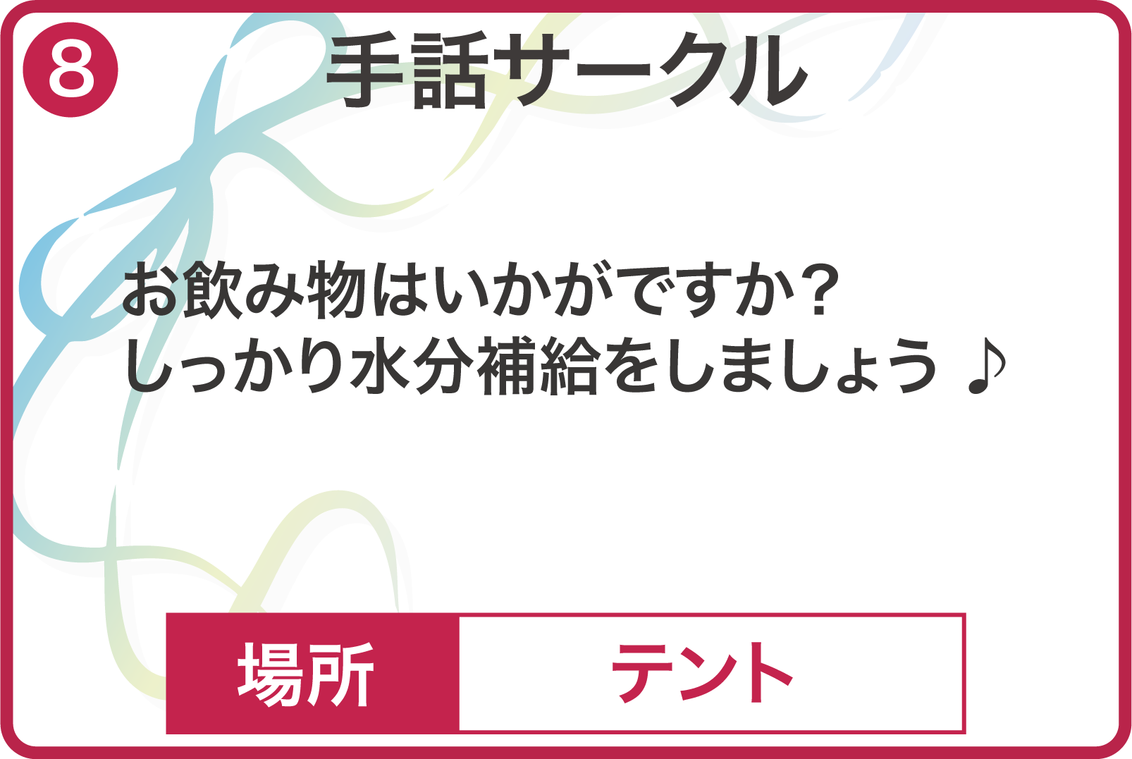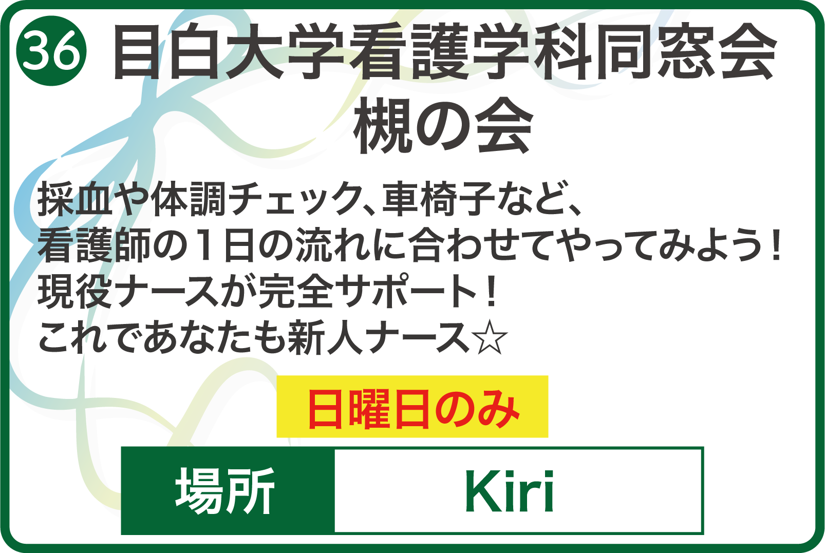 今年度の桐榮祭のテーマは『想い〜繋がる絆、広がる想い〜』です。医療職を目指す私たちが大切にしているのは、「相手を思いやる姿勢」、そして「人とのつながり」です。誰もが自分の想いを素直に伝え合い、互いに尊重し合える桐榮祭を作り上げたいという願いを込め、このテーマを掲げました。