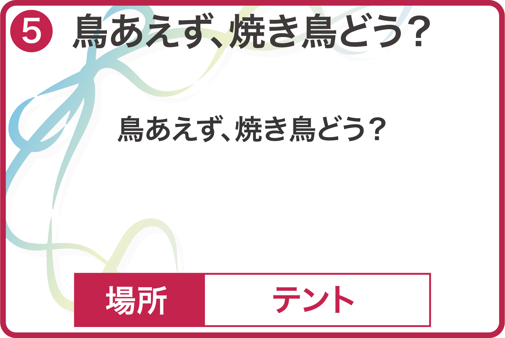 有名なJ-POPやアニメソング、流行曲などスピーカーから流れてきた曲のタイトルを誰よりも早く答えるゲームです!