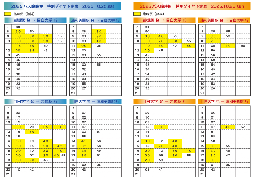 臨時バスの時刻表はこちら